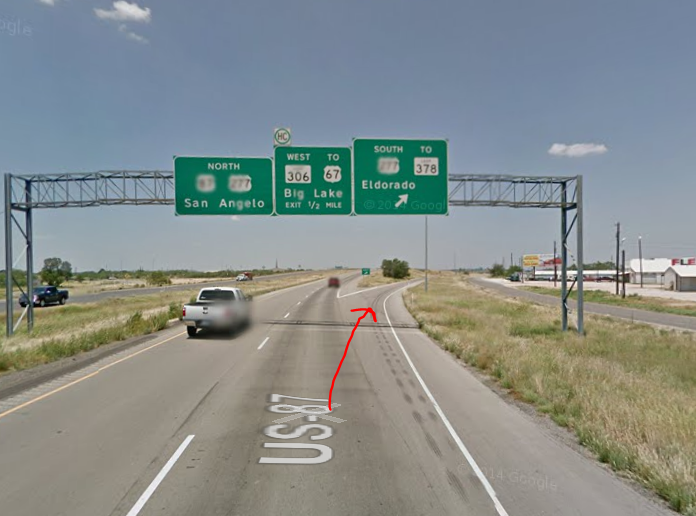 Longer Way: Take the Eldorado Exit that merges with the frontage road and then Christoval Rd.